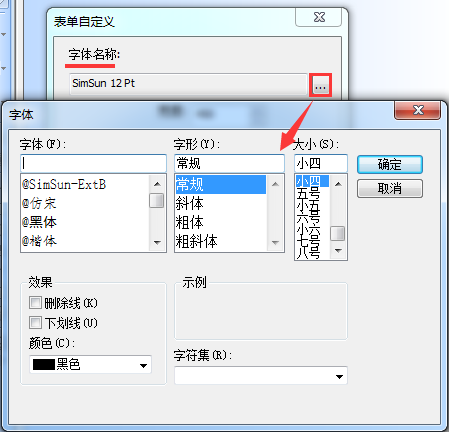 定义表单中使用的字体。要对其进行更改,请单击“…”按钮。